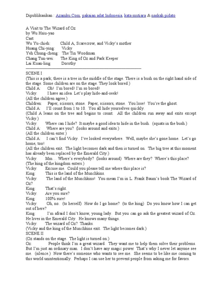 Apakah sahabat kbi menyukai seni? Dalam dunia seni, drama bisa menjadi satu di antara hiburan untuk melepaskan penat. Contoh naskah drama bahasa inggris 5 orang pemain | dorothy gale | the wonderful wizard of oz contoh naskah drama 5 orang dalam bahasa . Contoh naskah drama 5 orang dalam bahasa inggris dan artinya. Kemudian, ahsan dan iba mengatakan ke dia bahwa mereka tidak melihat adanya dompet jatuh pada saat mereka sedang berada ditaman.